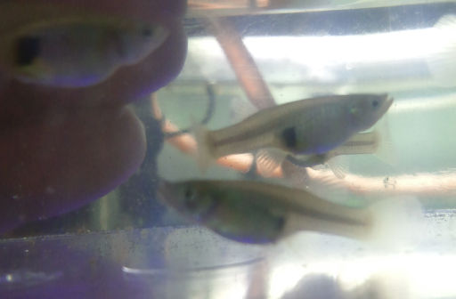 旅行前に確保しておいたメダカを水槽に移してみると。