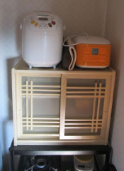 下のカセットコンロ除くと、ハカリ、炊飯器、パン焼き器。