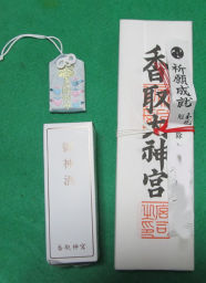 名前は消して、御神酒と御札に御守り。