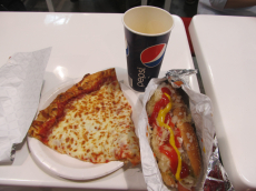 180円のホットドッグ&ジュース飲み放題は、お得でした。ただ、ピザは、昼だし、いらなかったぐらい腹ふくれました。