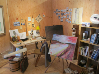 アトリエの再現と御輿の展示。