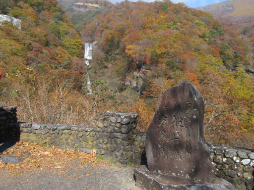 石碑に左の方等滝と右に般若滝と書かれています。左の滝と撮影