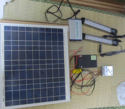 いま、2Wの照明2つで、4W-12V=0.3A 1.5倍程度の充電時間があれば、