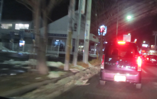 イオンの前。前の車は、ブレーキランプ切れてますね。
