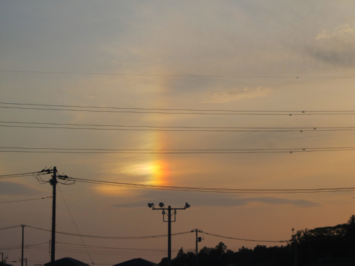 帰り道見た虹。縦に一本しか見えませんでした。