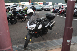 談合坂にて、朝6時20分。このバイクなら問題ないけど、ガソリンスタンドないねぇ。