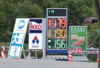 談合坂のSAにて、ガソリン見てビビッタ。