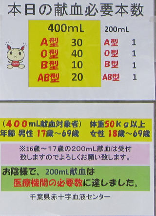 千葉でしなくなった理由は、献血センター(と駐車場)が、近所にないせいも