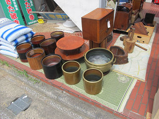 寺とかにある線香立て?たばこ用?たぶん灰とか炭を入れる火鉢の小さい版だとは思うのだけど。