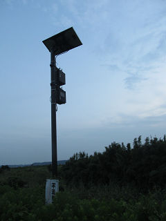 40~75w程度のパネルに上の箱が、充電コントローラとたぶん、タイマーでも入れてるとおもう。