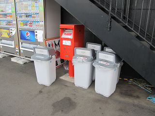 ホームセンターのポスト。空き缶捨て場と一体化していて気づかない。