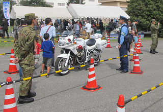 警察、消防署協賛のパトカー白バイ、消防車にのれます。