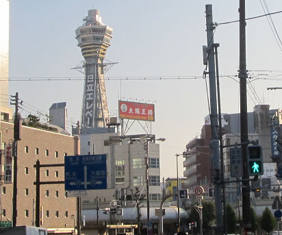 阪神高速の下(バシの一番端)通天閣がよく見えます。