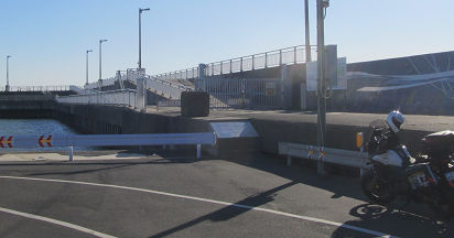 飯岡漁港。真ん中に四角いブロックがありますが、その高さまでしか元々堤防はありませんでした。ここから先は、門で釣り人も入れないようにブロックしてました。