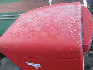 画像は、ポストの上。ピンストライプみたいなきれい模様が出来てました。