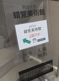新宿線だから小川町でおりて、徒歩1分(建物5つ分ぐらいか?)錯覚美術館(明治大学)に行ってきました。ワンフロアの個展みたいな展示です。