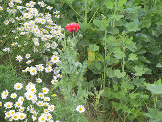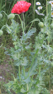 まあ、八重咲きできれいとはいえ、大きいの一輪、小さいの一輪では、緑のケシ坊主では見つけにくかったかもね。