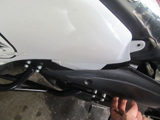 サイドカバーのボルトとプッシュリベットとって、まずは、サイドカバーか外す。