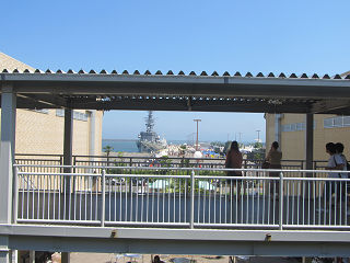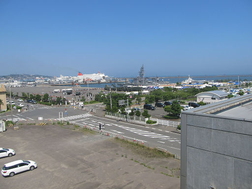 バイクを停めた。前のわくわく科学館の3階から、大洗港全景。