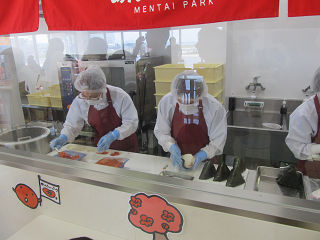 めんたいパーク。試食は、明太子の寿司をやめて、有料化したけど、