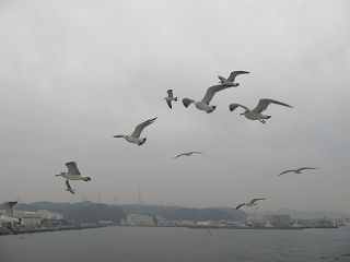 必殺ポップコーン攻撃。カモメの水兵さんが、大量に寄ってきました。