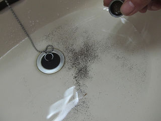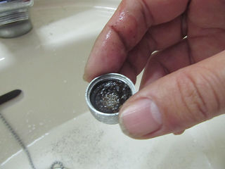 おまけ、泡沫水栓外してみた。さびというか砂だらけ。